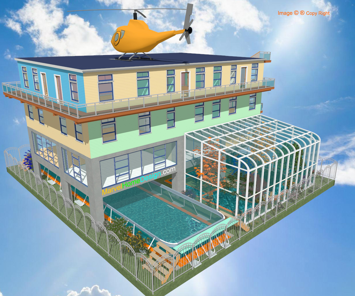 b. Solarium Pool House + 25yd Pool + Heli-Pad